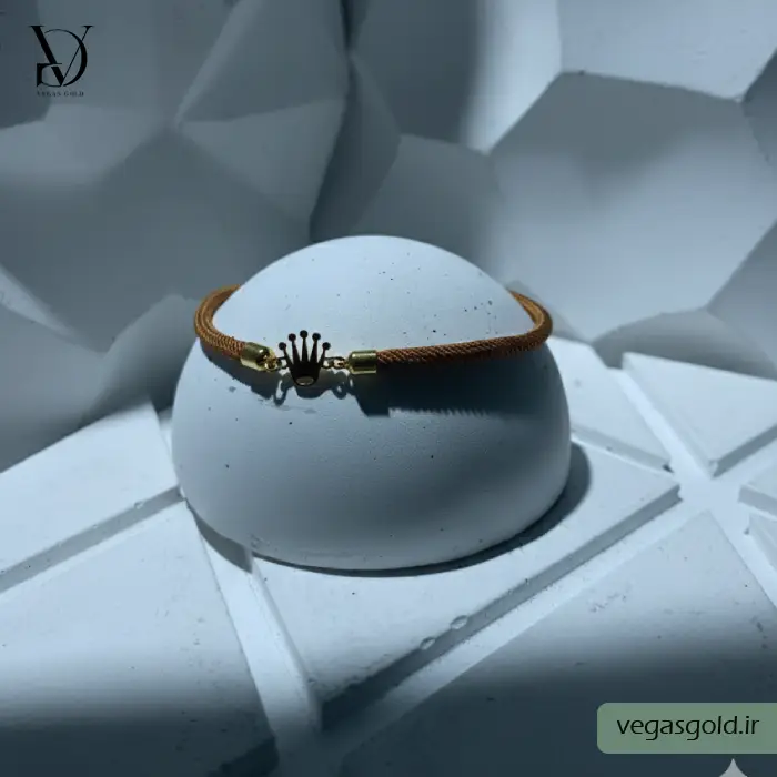دستبند نخی با پلاک طلای ۱۰۰ سوت: طراحی ساده و شیک