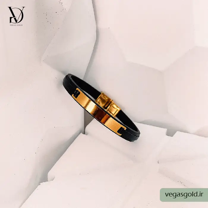 دستبند چرم با پلاک طلای ۳۱۰ سوت: پلاک ضخیم، لوکس و وزین