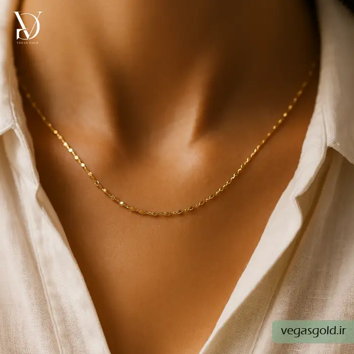 زنجیر طلای پولکی یکی از ظریفترین و درخشانترین مدلهای زنانه است که با وزن سبک خود